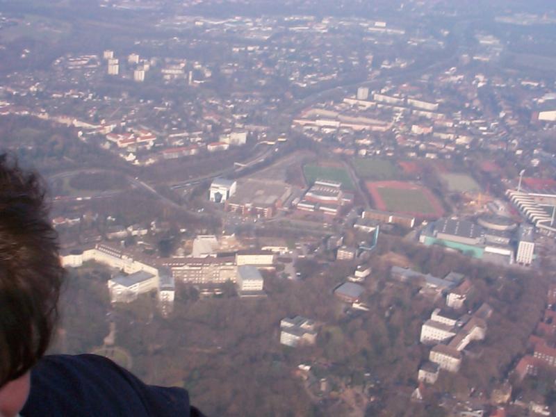 Ja.. Und dann wurde die Fahrt doch recht laaangsaaam. In der Mitte des Bildes erkennt man das IMAX und die Starlighthalle, rechts einen Teil des Ruhrstadions.
